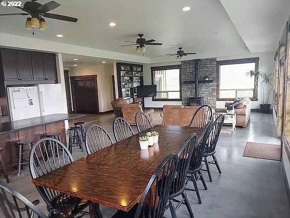 PRIVACY! Commanding mtn views (7 Devils & Wallowa Mtns.)on 160ac. CUSTOM 4 BD 3 BATH HOME. Attached double garage with separate guest quarters inc. full bath. Certified wood stoves in home & garage. Concrete floors plus concrete around complete perimeter, Large shop storage bldg with water & power. Secluded but 5 minutes to town.