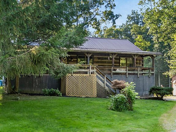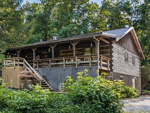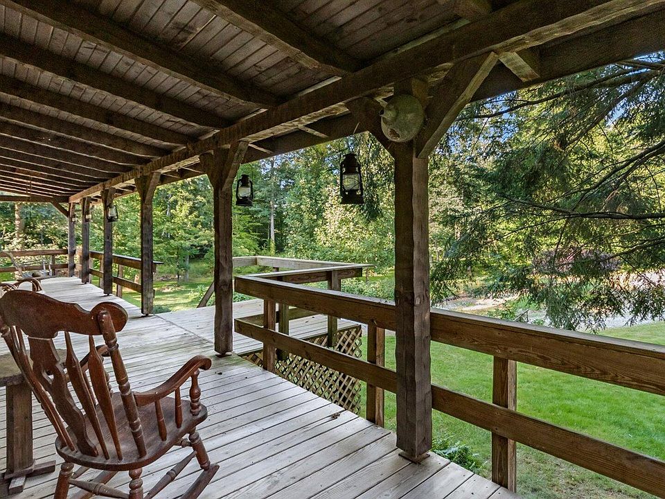 Country property with a raised ranch log home situated on 6 acres, pond and a four-car detached garage. The home offers three bedrooms, two baths, large country kitchen with dining room, laundry and a walk out basement. Newer furnace - 1 1/2 years old. The walk out basement offers a Rec room for an evening of playing pool, wood working room and lots of storage. The deck is off of the kitchen - great for entertaining guests for a cookout. The views are beautiful from the long porch in the front of the home- very peaceful and relaxing. Feels like a mountain home. The setting is so peaceful so if you're looking for a home away from the hustle and bustle of life, call today for your appointment.
