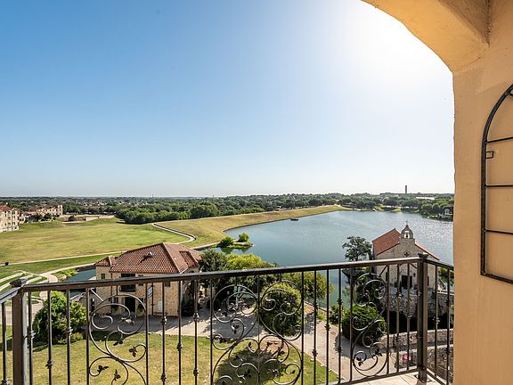 Luxury corner adjacent penthouse in Adriatica Village with breathtaking lake views and spectacular sunsets over the iconic bell tower. Features soaring 12ft ceilings, gourmet Wolf gas stove, Sub Zero refrigerator and freezer, wine fridge, granite counters, custom cabinetry, elegant crown molding, travertine and rich wood floors, and a spa like master retreat with a Jacuzzi tub. Enjoy lively weddings, professional photo shoots, kayaking, and family picnics on the lake with this all visible from your private balcony. Includes two reserved covered parking spaces and secure private storage. Walk to unique dining, boutique shops, charming coffee shops, and scenic hike&bike trails This is penthouse living at its finest with what my be the best views in Collin County