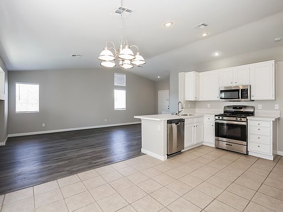 With an attractive stucco exterior and an attached two-car garage, this North Las Vegas rental home has great curb appeal. It offers three bedrooms and two bathrooms in 1,320 square feet. The open layout starts with modern wood-look flooring welcoming you into the spacious living room, where you?ll find several big windows and a vaulted ceiling. Tile flooring flows from beneath the dining room's chandelier to the kitchen's stainless steel appliances. The master suite features a large closet and a private bathroom with a combination bathtub and shower. Outside, the property includes a shaded patio in an enclosed backyard. Call today to schedule your tour.