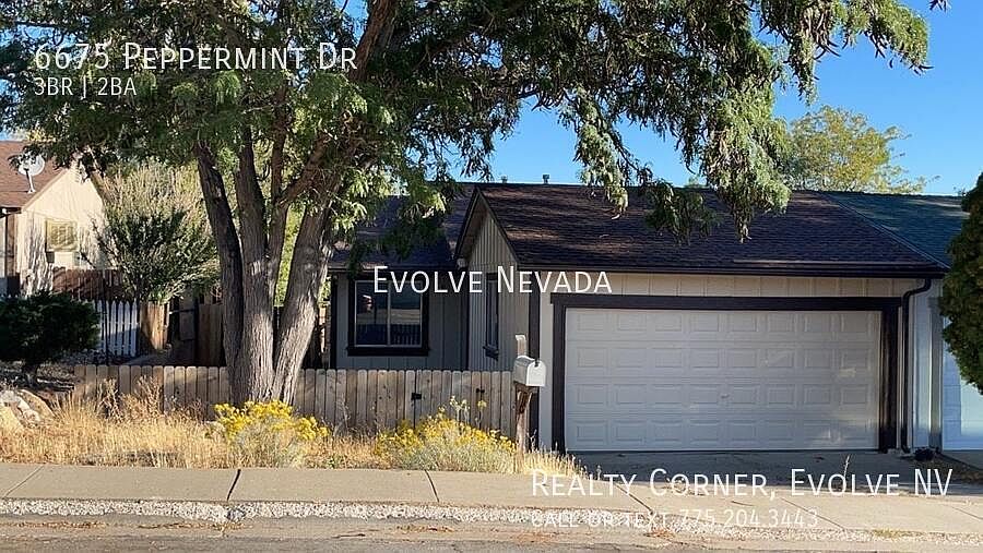 Welcome to 6675 Peppermint Drive, a charming 3-bedroom, 2-bathroom unit in the heart of Reno. Situated in a desirable neighborhood, this spacious home offers comfort and convenience for your family. As you arrive, you'll notice the new paint inside and out that creates a fresh and inviting ambiance throughout the entire property. The kitchen and laundry area feature vinyl flooring, providing both durability and easy maintenance. The living room and bedrooms are adorned with plush carpeting, ensuring ultimate coziness in every corner. Enjoy the convenience of a separate laundry room with washer hookups, and the dryer is included, making laundry day a breeze. With an attached two-car garage, you'll have plenty of space for parking and storage. This unit boasts an impressive 1,080 square feet of floorspace, providing ample room for all your needs. The open layout allows for seamless flow between the living areas, creating an ideal space for entertaining guests or spending quality time with loved ones. Located in a prime location in the north valleys, you'll have easy access to nearby amenities including shopping centers, restaurants, parks, and schools. Commuting is a breeze with major highways just moments away. Don't miss out on this fantastic opportunity to call 6675 Peppermint Drive home. Contact us today to schedule a showing and make this stunning unit yours.