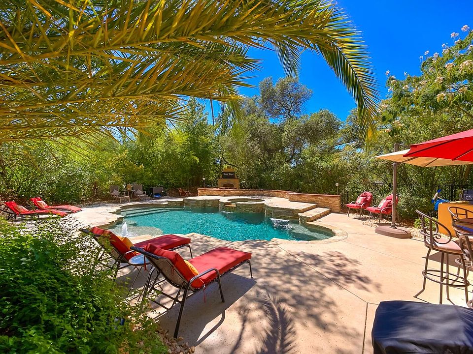 Welcome to this beautiful single-story home in the sought-after Walden Woods neighborhood of Granite Bay. Renowned for its top-rated Del Oro school district! This 4 bedroom 2 1/2 bath home is 2657 Sq Ft. (4th bedroom is not permitted. It adds approx 240 Sq Ft to the existing 2417 Sq Ft for a total of 2657 Sq Ft) and is on almost an acre (.92). As you enter, you'll be welcomed by an abundance of natural light highlighting the custom cabinetry and the inviting wood-burning fireplace in the family room. The spacious layout includes a formal dining room and living room, perfect for entertaining. The recently remodeled kitchen is a chef's dream, featuring a custom island, Kitchenaid appliances, granite countertops, pantry closet, and a wine refrigerator. The master suite is a serene retreat, boasting a walk-in closet and a slider that opens to a newly completed Trex deck. Step outside to your private Oasis, where you'll find a beautifully landscaped space with multiple seating and entertaining areas. Highlights include: Large grass area with a new tuff shed, Custom chicken shed, A large Roman-style pool with PebbleTec finish, complete with three waterfalls, extended seating, and a hot tub, An outdoor kitchen and fireplace, ideal for gatherings!
