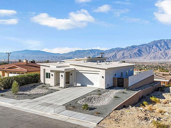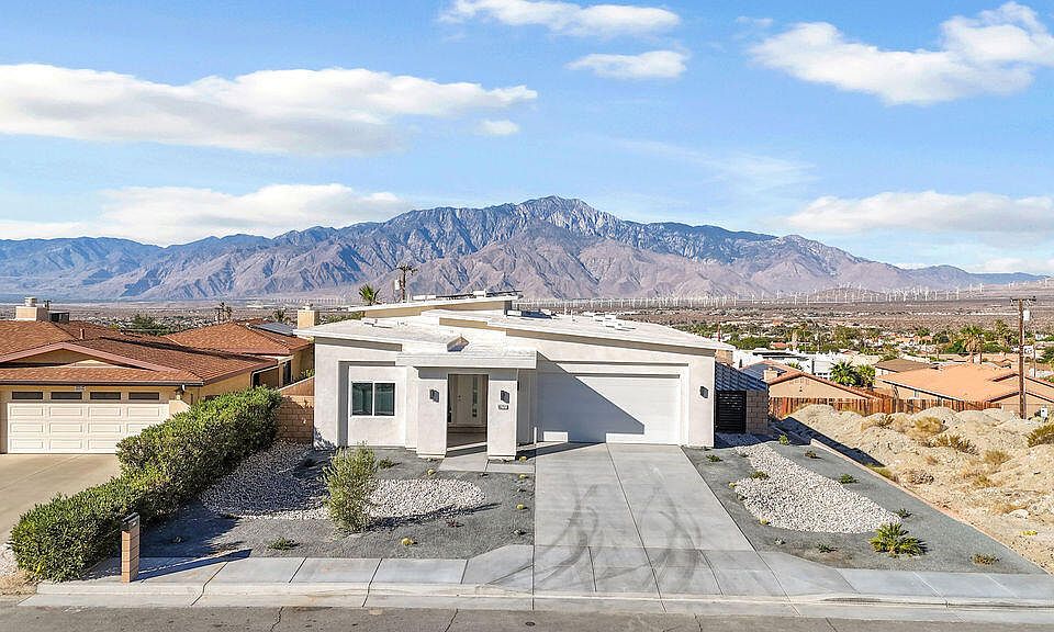 This brand new home in Desert Hot Springs features four bedrooms and two and a half modern bathrooms. It offers breathtaking views overlooking the Coachella Valley, providing a perfect blend of comfort and natural beauty. This home is ideal for enjoying stunning sunsets and serene morning.
