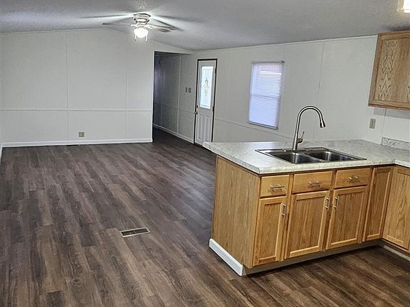 Welcome to this newly remodeled mobile home in Shellsburg. It has been remodeled and is ready for a new owner. The kitchen is brand new with all new appliances. It has all new fresh paint and flooring throughout. This home has a large yard and a nice size deck for all your BBQs. This home is on leased land and does require park approval. lot rent in this park is $400 a month per park management.