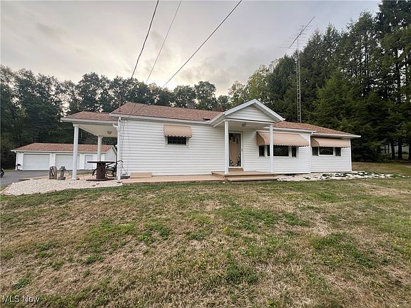 Well maintained 3 bedroom vinyl sided ranch home on a peaceful 1 acre setting. French doors in the living room lead to the 15 X 7 covered porch. Corian counters in the kitchen with range and refrigerator. 115 gallon electric hot water heater. Updated vinyl siding, replacement windows and roof in 2018+/-. New aeration system in 2021. 24 X 30 detached garage built in 2018 with paved driveway sealed in 2023. Whole house generator covers everything but the a/c. Waterproofing system for front and right wall with sump pump. Fantastic country views throughout the property.