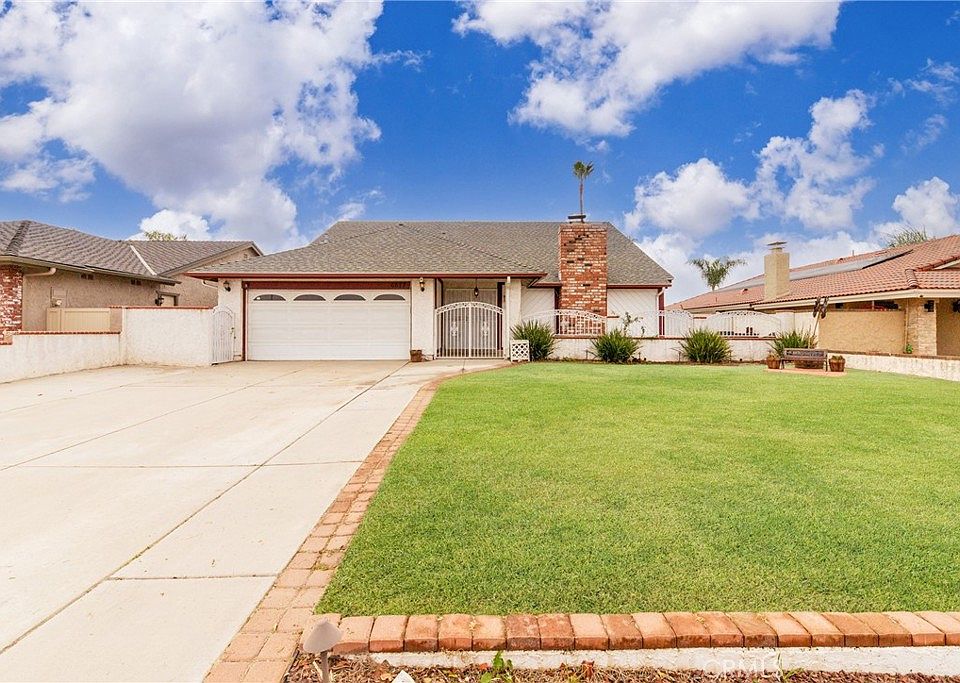 Welcome to your new home! Once you see what this property has to offer, you’ll want to make it your own. During your arrival you’ll notice the beautiful, quiet neighborhood that surrounds this home. At the home’s front is a well-manicured lawn, followed by a gated private seating area. Upon entry you’ll be in awe at the elegant high vaulted ceilings and large family room, with a cozy fireplace and beautiful laminate wood floors. The family room opens into the kitchen bar area, creating a perfect space for entertaining guests in multiple rooms. The kitchen has been fully upgraded with gorgeous granite countertops and tile floors. Here you’ll find access to the giant enclosed sunroom, (not included in square footage), with its own sink, plumbing and electrical, making for a great bonus space. The sunroom leads out to a spacious backyard, where there’s plenty of room to build a pool or ADU if desired, but it already has much to offer, including an above ground spa, waterfall, wood deck with plenty of seating, a fire pit, 2 separate patio covers with fans, a shed, BBQ, and 3 avocado trees! Back inside you’ll find a large, freshly painted master bedroom, with a shared attached bathroom that can be accessed from both the master and the hallway. Upstairs you’ll find the remaining 3 freshly painted bedrooms and remaining bathroom. The 3 bedrooms are all well-sized, including another large master that has an attached shared bathroom, with access from both the master and the hall. Off the hallway is a door that leads to a large attic space above the garage, providing ample storage room. That’s not all! This home also has PAID FOR SOLAR, a newer roof (4 years old), newer HVAC system (5 years old), a whole house fan, plenty of cabinet storage space in the garage, and all items are staying with the home including the outdoor furniture! This neighborhood has NO HOA, is close to schools, shopping, and the 60 and 71 freeways. Don’t miss out on the opportunity to make this home yours, schedule your showing today!