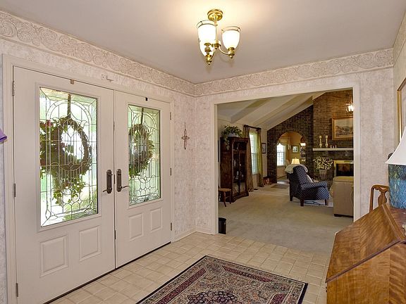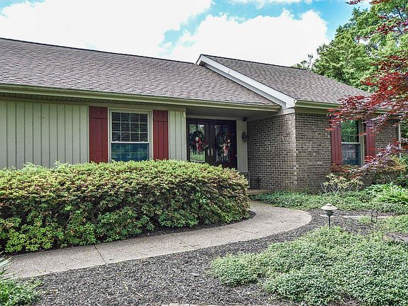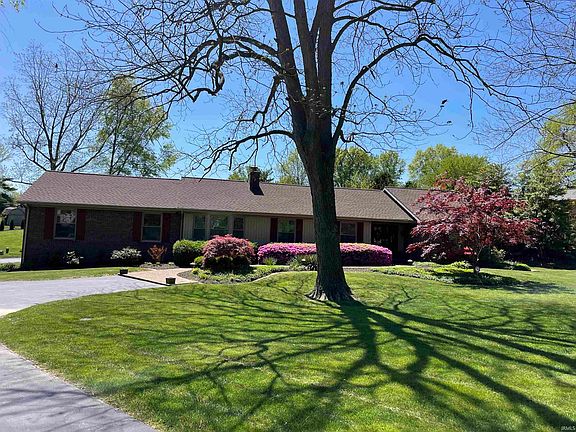 This meticulously maintained brick ranch is conveniently located in Newburgh’s Ridgewood neighborhood. Enjoy spacious living in 3,100 sq ft on .74 acre with mature landscaping and trees providing a park-like setting. Covered front porch and double leaded glass doors welcome you to this 3 bedroom, 2.5 bath home. The spacious great room has new carpet, built-in bookcase, and a double sided brick fireplace also enjoyed in the dining room. The vaulted and beamed ceilings in the great room and adjoining sunroom add an airy and expansive feel. The sunroom overlooks the beautifully landscaped backyard with a sports pool and large patio with a view of the lake. The dining room, featuring a bay window, is open to the kitchen that was completely renovated with new cabinets, black granite counters, and hardwood floors extending into the guest bathroom. The bonus room offers additional living space with built-ins for extra storage. The laundry room is on this level. The large en-suite bedroom offers two closets, one of which is a walk-in, newer double bowl vanity and walk-in shower. There is plenty of storage in the 2.5 car garage with an extra clean eboxy floor. In addition to the many updates listed in the attached documents, this home includes all kitchen appliances, washer and dryer, generator, cameras and security system, yard barn, patio furniture, and pool equipment including a volleyball net for summer fun. This home offers the perfect blend of comfort, elegance and convenience!