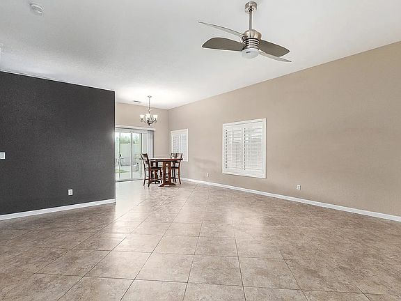 Inside, the home boasts high ceilings, ceiling fans throughout, and a mix of tile and hardwood flooring. Plantation shutters add a touch of elegance and efficiency to every room. The eat-in kitchen is both stylish and functional, featuring updated cabinets and stainless steel appliances.