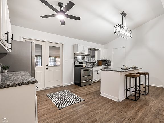 Welcome to 6678 W 14th Street, a beautifully updated 3-bedroom, 1.5-bath home with a 2-car garage featuring updated flooring and paint throughout. The modern kitchen boasts vaulted ceilings, stainless steel appliances, and a center island, opening seamlessly into the main living area. The primary bedroom includes a private ensuite half bath, adding comfort and convenience. Enjoy outdoor living with a spacious front porch, screened-in back patio, and fully fenced yard-on a 0.34-acre lot, perfect for relaxing or entertaining guests. Major updates include a tankless water heater (2024) and HVAC (2021) for year-round efficiency and low maintenance. Located in the MSD School District, this home offers quick access to I-465, I-74, and I-70, and is just minutes from Avon, the Indianapolis Motor Speedway, and roughly 15 minutes to Downtown Indianapolis. Schedule your showing today!