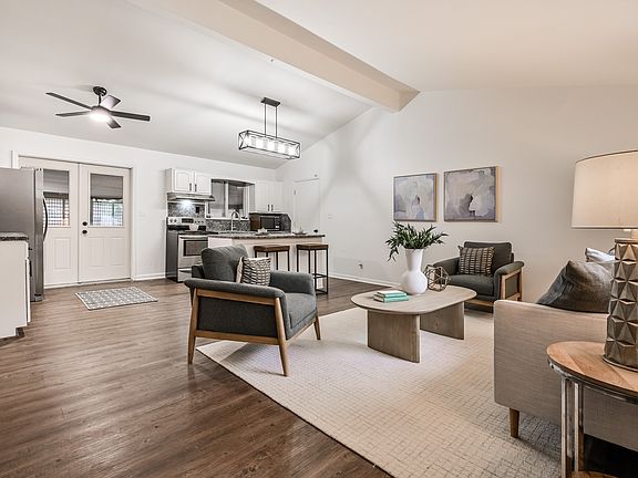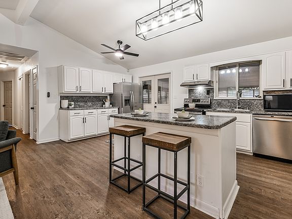 Private ensuite half bathFully fenced yardModern kitchenSpacious front porchVaulted ceilingsScreened-in back patioUpdated flooring