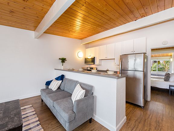 The apartments feature vinyl plank flooring throughout, updated counter-tops, and full size appliances. There is the option to include a dedicated parking space. Park your car here and walk to the beach- it's only five blocks from Del Playa access.