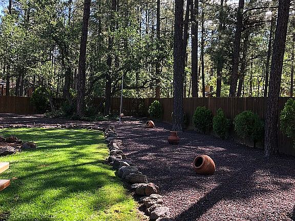 - Exterior Features: Gutters/Down Spouts, In the Trees, Landscaped, Sprinklers, Street Paved, Tall Pines On Lot