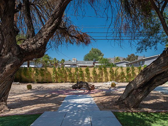 Welcome to this beautifully renovated 3-bedroom, 2-bath home offering the perfect blend of style, comfort, and functionality. Every inch of this residence has been thoughtfully updated with impeccable attention to detail, creating a modern living space that feels both fresh and timeless.Step inside to discover a light-filled interior featuring contemporary styling, freshly painted walls, and newer tile flooring throughout. The semi-open chef's kitchen boasts abundant newer wood cabinetry, recessed lighting, stainless steel appliances, and a gas stove--ideal for both everyday meals and entertaining. Additional highlights include remodeled bathrooms, ceiling fans, and built-in hallway storage. A dedicated laundry room is equipped with a newer washer and dryer, complemented by a newer hot water heater for peace of mind.The home is surrounded by incredible views of Mt. San Jacinto, enhancing the indoor-outdoor lifestyle that makes desert living so special. Outside, the backyard is a private oasis designed for relaxation and entertaining, complete with pavers, shaded seating areas beneath mature trees, cactus gardens, newly planted ficus trees, and a generous outdoor living space.From the privacy curtains on closets to the thoughtfully placed upgrades throughout, this home truly balances convenience and luxury in a prime Desert Hot Springs location.