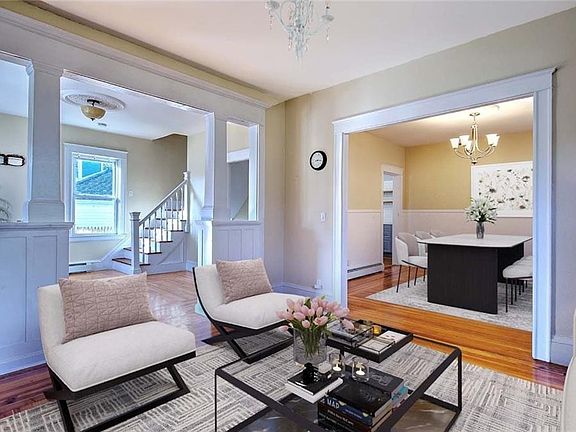 New listing in Elmhurst close to city amenities! This spacious home offers an exceptional amount of living space perfect for larger families or multigenerational living. Gorgeous hardwood floors accent most of the layout, from the welcoming foyer, bright living room, and cute sunroom/home office to the formal dining room. The kitchen includes stainless appliances and a convenient butler’s pantry, along with a washer and a half bath. Step out to the pergola-covered patio and fully fenced-in yard to savor the lovely New England weather. Upstairs, you’ll find four bedrooms and a beautifully updated full bath. One of the bedrooms provides access to a walk-up finished attic with a large bonus room and an additional smaller finished space. The lower level includes two finished rooms, another bath with a shower, and a washer/dryer setup. Park in the detached two-car garage before exploring the neighborhood. A short drive lets you enjoy the restaurants, specialty shops, and cafes of Olneyville and famous Federal Hill. Venture downtown for unrivaled theater and fine dining, in addition to the sights, sounds, and aromas of WaterFire at Waterplace Park. The convenient downtown train station lends swift passage to Boston, New York, and beyond.