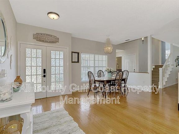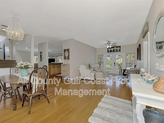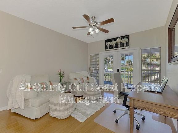 Welcome to your new home in South Venice! This charming 3-bedroom, 2.5-bathroom + den home is available for an **ANNUAL LEASE** and offered **UNFURNISHED**. Step inside to find wood floors, neutral tones, and plenty of natural light throughout. Upon entry, you'll be greeted by a more formal dining area along with a formal living room. To the right are two secondary bedrooms paired with a full bathroom for added convenience. To the left, you'll find the main living space, with the kitchen at the heart of the home featuring a large tiered counter, stainless-steel appliances, and plenty of cabinet and counter space. Just off the kitchen sits a breakfast nook with beautiful views. The kitchen flows seamlessly into the main living area, creating the perfect spot for relaxing or entertaining. Through the sliding glass doors, you'll step out onto a spacious wrap-around screened lanai...arguably the best spot in the house to unwind and enjoy the Florida breeze! Just a few steps up, you'll find the primary suite, which is generously sized and features a large walk-in closet and a stunning ensuite with dual sinks, a walk-in shower, soaking tub, and private water closet. An additional room currently pictured with a bed, serves as a den or flex space, offering plenty of versatility. Other features include a two-car garage, large storage shed, metal roof, in-unit washer and dryer, and a touch of unique charm throughout.