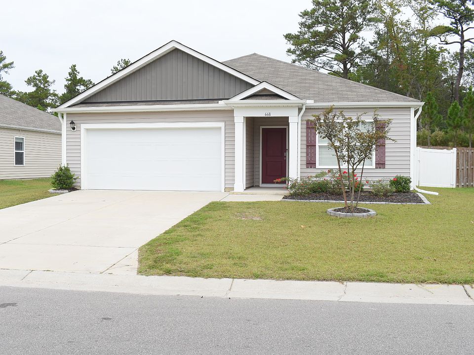 Like-new home in Seabrooke with pool access! Built in 2022, this one-level home features a stunning kitchen with island and stainless appliances, opening into the main living area. The primary bedroom has an ensuite with large walk-in closet and double sinks. Sliding glass doors lead you out to a fully fenced backyard with patio. ADT security system with smart package is available at tenant's expense, which can control the garage door from your smartphone app. Just minutes to downtown Wilmington and a growing retail area, this home has it all!