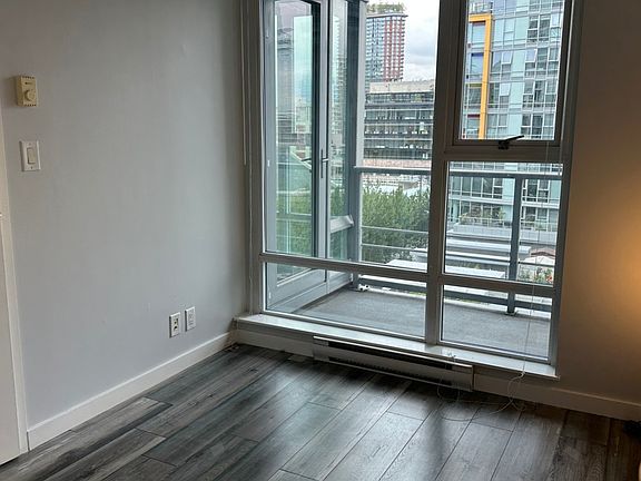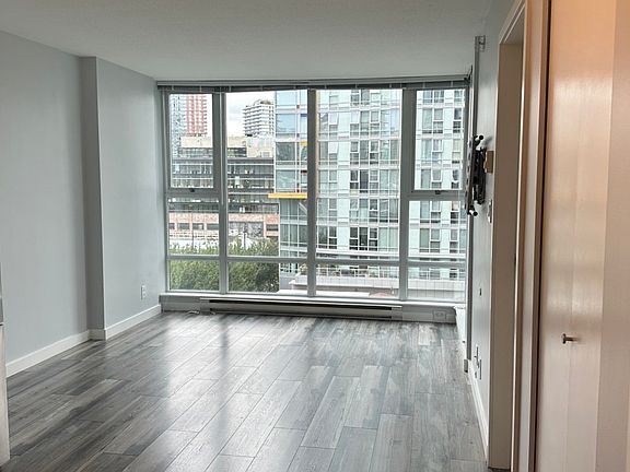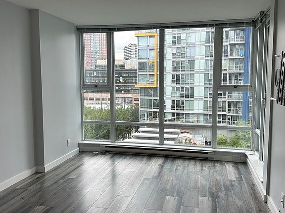 Welcome home to Spectrum 2, situated in the highly sought-after Downtown Vancouver neighbourhood. This North-facing condo features laminate flooring throughout, soaring over-height ceilings, and floor-to-ceiling windows that flood the home with natural light while framing breathtaking views of the city skyline and the North Shore Mountains. Step onto the private balcony to enjoy your morning coffee with a view. The contemporary kitchen is thoughtfully designed with custom cabinetry, quartz countertops, and stainless steel appliances. Residents of Spectrum 3 enjoy access to amenities such as a concierge, social lounge, fitness centre, sauna/steam room, hot tub, 80' indoor pool, and landscaped courtyards.