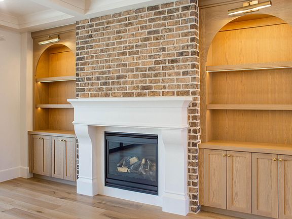 Oversized garageEngineered wood floorsTall entrywayCustom millworkFire pitPaver drivewayNew-age brick exterior