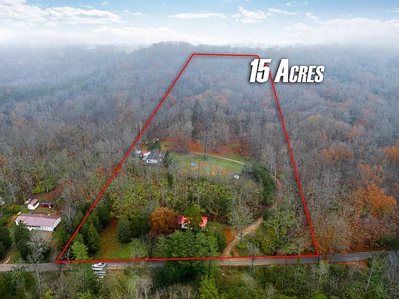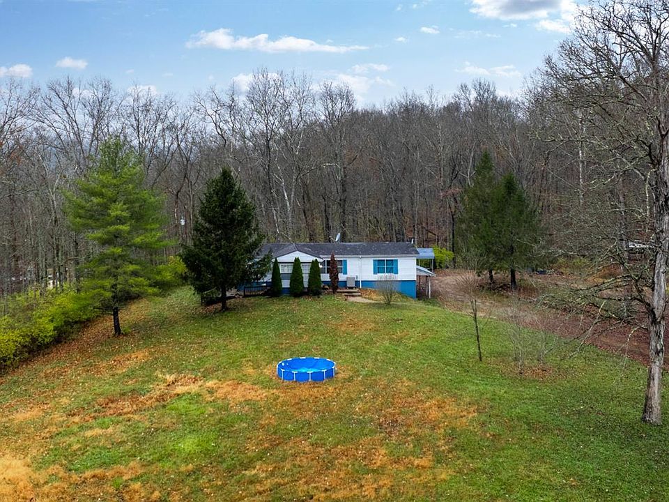 15 Acres boasting with a 3 bedroom and 2 bathroom manufactured home sitting on a partial basement. Great setting, very private, mostly wooded, nestled in the hills. Split floor plan, needs some cosmetic work, new flooring recently laid in living room. Covered porches and a one car detached garage. Come make this home your own!