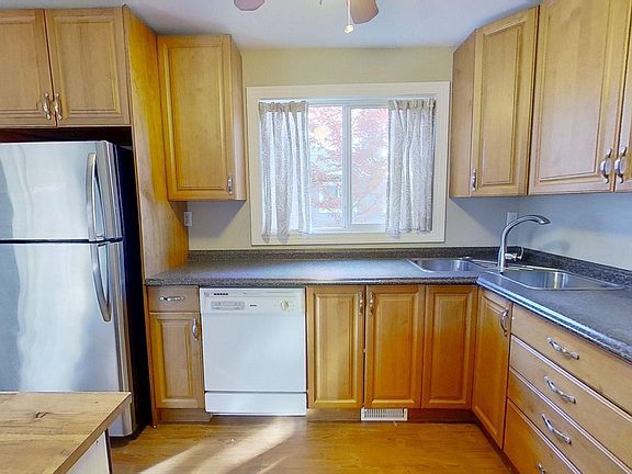 Spacious master suite with large walk-in closet. One additional bedroom plus linen closet. Full bathroom on upper level and a ½-bath on the main floor. Entry closet. Kitchen includes fridge, stove, dishwasher, exhaust fan, and a small pantry. Dining room and living room. Patio doors open to a fenced backyard with a deck. In the basement: large recreation room, storage room, washer/dryer, and mechanicals (water heater and furnace approximately one year old). Parking: one stall just outside the door, visitor parking about 10 ft away, plus street parking available. Excellent location near Percy Page High School, elementary schools, Millwoods Recreation Centre, LRT, and Millwoods Town Centre shopping.