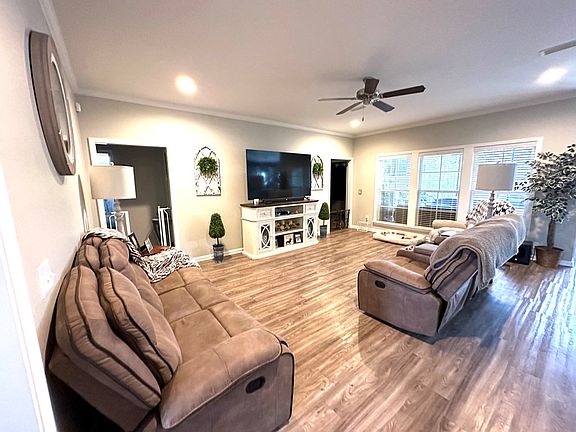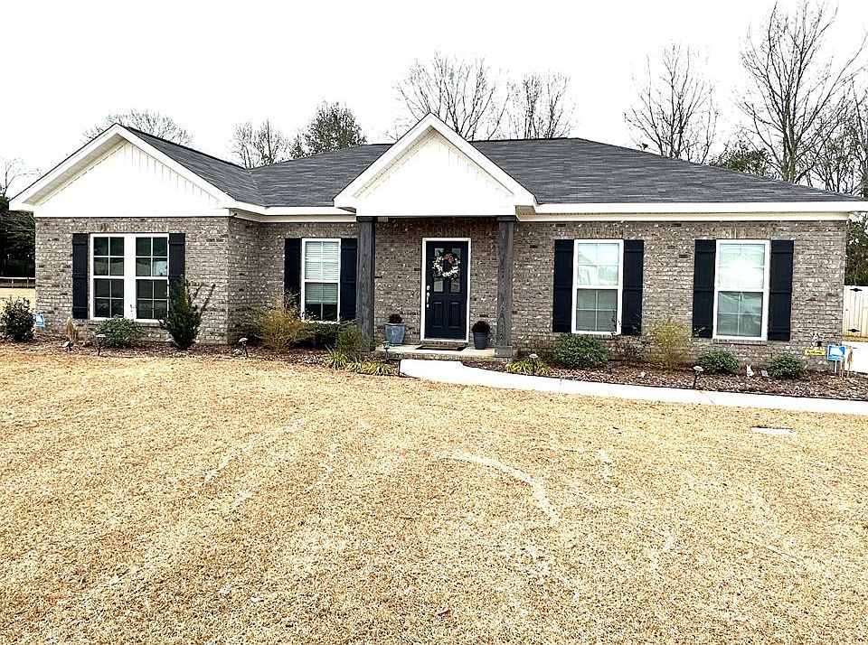 This house features Low maintenance brick exterior, granite counter tops in kitchen, stainless steel appliances, open concept living, kitchen with island and pantry, sizable laundry with utility sink, entry bench, rear covered patio, rear patio extension, private master suite featuring split his & her sinks with a linen cabinets, separate soaking tub, compartmented water closet and large walk in closet.