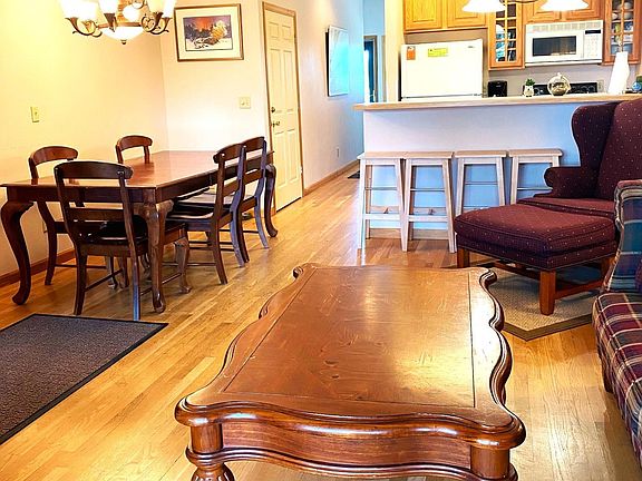 - Description: Living room has a patio door that opens up to a screen porch overlooking Joni's Beach and the lake.