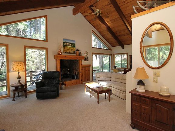 Escape to the mountains and enjoy this spacious Blue Lake Springs home! Set on almost a half an acre, this awesome home sits back off the street and under the trees creating peace and tranquility. Here's what you'll find on the main floor...tons of windows and skylights allowing nature in, a bay window with bench seat, plus a bedroom and full bath. There's also two separate living room areas that create a huge open space, each with it's own wood burning heat, and laid out in such a way that everyone feels included! The center of the house is anchored by a fully functional kitchen and dining area with large pass-through window opening and access to the back yard area. Upstairs you'll find two more bedrooms and full bath. Relax and entertain on the front or side decks for BBQs, meteor/rain/snow showers. Plenty of guest parking and super close to the sensational Blue Lake Springs rec center. What are you waiting for?