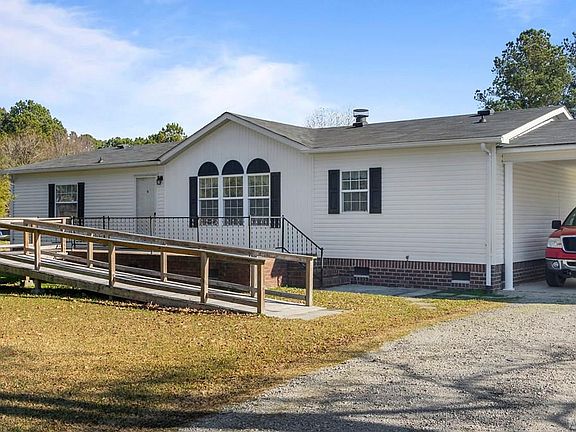 One owner home so well cared for! There is a concrete porch with a ramp that can be removed. Double attached carport and two 16 x 10 vinyl sided storage buildings. Also has a 10 x 20 concrete covered boat shed / picnic area. Deck on the back is 15 x12. Hall bath has recently been renovated. Wonderful laundry room with space for hanging laundry. Large living room with fireplace. Spacious dining room... has room for a china cabinet. Kitchen has an island, very spacious. Plenty of room in the back yard for play.