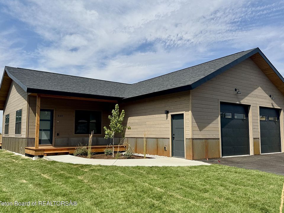 A must-see, this wonderful new home is close to downtown Driggs, ID. and situated on a quiet street, close to local schools. The open concept floor plan is light-filled and comfortable, with 3 bedrooms, 2 baths, mud/laundry room and a huge 2 car garage! You'll also enjoy views of both the Teton Range and the Big Hole Mountains from inside or outside on either of the 2 decks. Short term rentals are allowed and the proximity to Grand Targhee Resort and Jackson Hole, WY give you many options to make this your Teton retreat. This home, based on its location, could be a great year-round rental. Call today for more information or to tour the home. *Furnishings are virtually rendered.