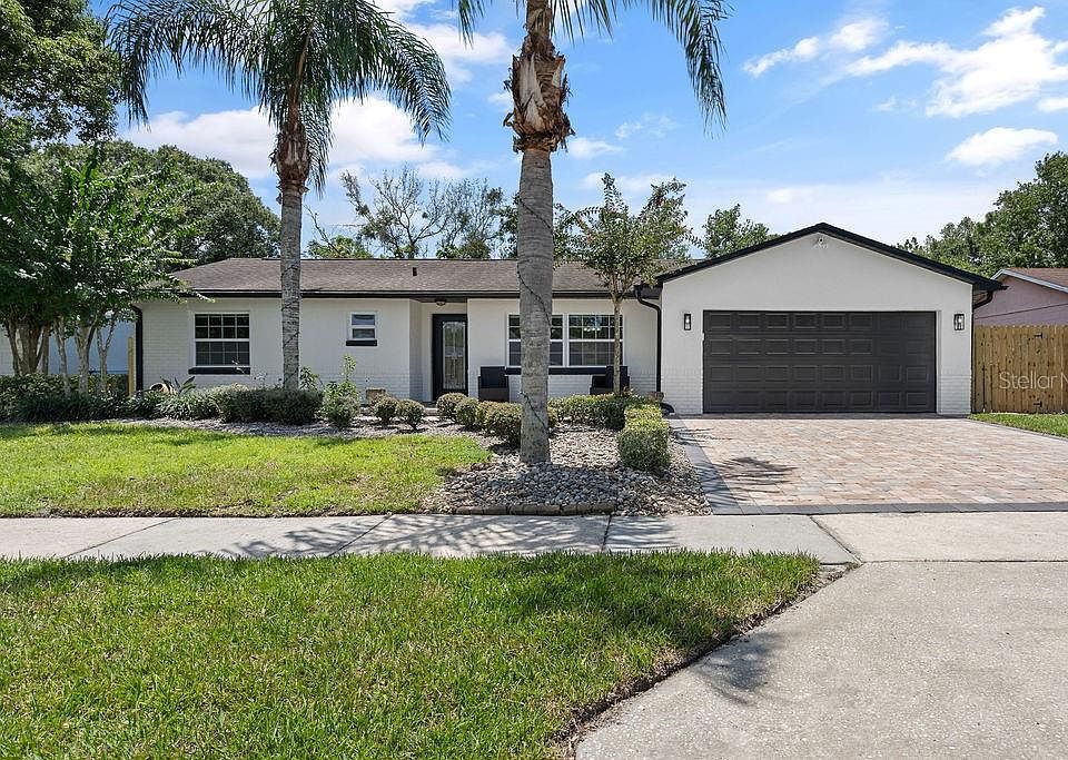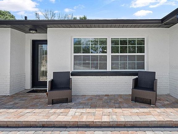 Expect to be impressed with this immaculate and move-in ready home in the well- established Riverwood community. It starts with great curb appeal - brand new sod & attractive landscaping, paver driveway and quaint front porch, new exterior light fixtures and a custom, etched glass front door. Step inside to an interior which reflects current design trends and exudes a bright and inviting living space. Quality improvements include: (1) beautifully updated baths, (2) Kitchen updates, including refurbished cabinets, granite counters and striking tile backsplash, (3) fresh interior/exterior paint, (4) removal of popcorn ceiling (a plus!), and (5) double paned windows. Layout features open common living space running from the front to the back and a split bedroom plan. Kitchen boasts an abundance of raised panel cabinetry, breakfast bar, a convenient pass-through window to the family room, and adjacent dining space that can seat a crowd. All appliances included (kitchen, washer/dryer). Spacious family room makes a great gathering space and provides direct access to the backyard lanai. The family room can be used as either an Office/Den or another living room space/bonus room, or both! It's large enough to use as you see fit. Primary suite is in the back off the common living space – ideal for privacy. Here you’ll enjoy a generous sized bedroom, ensuite bath with shower (rain shower head!) and walk-in closet with custom shelving. Secondary bedrooms and bath are tucked off the home’s hallway near the front entry. Other notable interior features: updated ductwork throughout; the roof was replaced in 2014. Another thing to love about this home is all that you have out back – expansive paver stone screened lanai (new screens) along with a large, open paver patio. The backyard has a new irrigation system and is dotted with fresh landscaping. Fencing gives you the privacy you’d want as you enjoy your fun in the sun. Ask your agent to see the list that provides all the details reflecting the seller’s good care and updates to this home. Great location – quiet neighborhood with no HOA! Five minutes to your Publix, 10 minutes to the Waterford Lakes Shopping Center and less than 2 miles to SR 408 and SR 417 giving you easy access to all of Central Florida. You’ll love living here. Come see all that this special home has to offer.