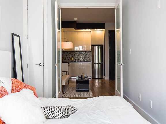 2 Bedroom apartment with recessed lighting, hardwood floors, high ceilings, open concept living room and modern kitchen with stainless steel appliances, sunny windows throughout, spacious bedrooms, ample closet space, backyard access, gym, roof access, and MORE! Photos of a similar unit in the building. Amenities Central A/C High Ceilings Hardwood Floors Video Intercom Natural Light in Living Area Laundry in building Storage Space Gym Outdoor Space Common courtyard Shared backyard Roof access Eat In Kitchen Stainless Steel Appliances Dishwasher Stone countertop