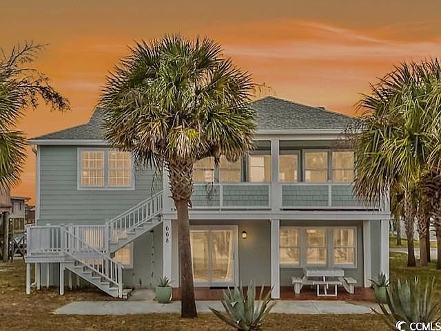 668 S Waccamaw Drive is a beautifully updated four-bedroom, four-bathroom, ocean view second-row home just steps from public beach access in Garden City Beach, South Carolina. Designed as a duplex-style retreat, it blends modern comfort with classic coastal charm and offers exceptional flexibility as a full-time residence, vacation home, multigenerational getaway, or income-producing property. With two fully separate living areas—each with its own utilities, full kitchen, and private entrance—you can enjoy the entire home, rent one or both levels individually. Upstairs features refinished original handcrafted oak hardwood flooring throughout, abundant natural light, and thoughtful updates that create a refined beach atmosphere. The updated kitchen includes quartz countertops, stainless steel Whirlpool appliances, custom built-ins, breakfast bar, and a dedicated workspace. Enjoy ocean sunrises from the kitchen, living room, and owner’s suite. The primary bedroom highlights ocean views, oak flooring, Lowcountry style, and an updated en-suite bath. The spacious guest bedroom provides views of sunsets over the marsh. The downstairs level offers two spacious bedrooms with custom built-ins, one and a half baths with laundry, a full kitchen with modern appliances, a dining area, and an oversized recreation/living space. It’s designed for effortless beachside living with ceramic tile flooring and durable, moisture-resistant materials, including foam insulation, PVC wainscoting, and Durock™ walls. Renovations by the current owner include new ductwork, updated HVAC systems, new water heaters, quartz countertops, upgraded flooring, bathroom updates, modern appliances, and more. Outdoor living shines with a covered front porch offering ocean views and a spacious back deck. The large backyard has ample room for a new pool, and the generous carport provides parking plus RV or boat storage. Located just steps from the shoreline and minutes from the Murrells Inlet MarshWalk, Garden City Pier, Marlin Quay Marina, Brookgreen Gardens, golf courses, state parks, shopping, and dining. Whether you’re seeking a turnkey beach home, a high-performing rental, or a flexible multigenerational retreat, this second-row beach property offers outstanding potential in one of South Carolina’s most desirable coastal communities. Take a moment to view the 3D floor plan and virtual walkthrough, then contact the listing agent or your buyer’s agent to schedule a showing.