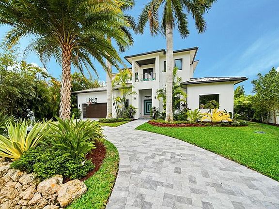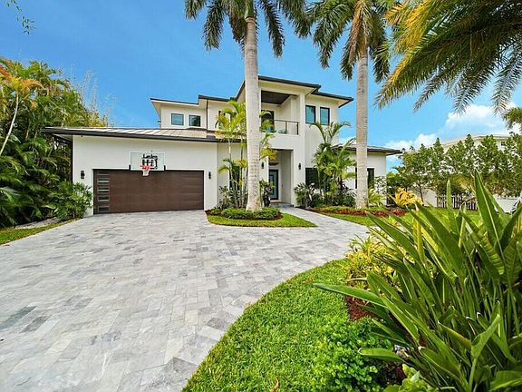 Discover luxury living at its finest in this exquisite 2022 custom-built modern home. Situated on nearly half an acre, this property offers ocean access and a private dock that accommodates yachts up to 60' on 121 feet of water frontage, making it a boater's paradise. Boasting a versatile layout, the home features four, possible five bedrooms plus an office and loft. Adorned with premium marble flooring throughout, creating a sleek and timeless aesthetic. The centerpiece of the gourmet kitchen is an illuminated waterfall marble island, complemented by top-of-the-line Thermador appliances for a chef-inspired experience. Enjoy the Florida lifestyle and tropical feel with a private beach equipped with your own tiki bar and heated 60x18 infinity pool overlooking the river. Additional highlights include a whole-house generator for peace of mind. This modern masterpiece combines luxury, functionality, and unparalleled waterfront living.