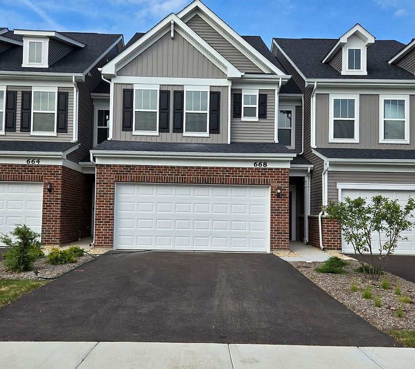 Floorplan and square footage on tour/3D tour-Stunning 3-Bedroom New Construction Townhome in Award-Winning School District! Welcome to this 2097 sq. ft. townhome, located in the highly sought-after IPSD 204 district, featuring the National Blue Ribbon Award-winning Neuqua Valley High School. This bright, sun-filled home boasts extra windows, filling every room with natural light. The heart of the home is the open kitchen, complete with upgraded stainless appliances, pots and pans drawers, and an oversized island-perfect for gathering while you cook. The spacious sunroom provides an ideal spot to relax. Upstairs, all three bedrooms have large walk-in closets, with the primary suite featuring a massive 7x14 closet and a luxurious tiled shower. This beautifully designed home offers comfort, convenience, and modern living in one of the best neighborhoods around! Photos of similar home shown with some options not available in this home at this price. Townhome 58004. THIS HOME IS READY TO CLOSE AND MOVE IN!