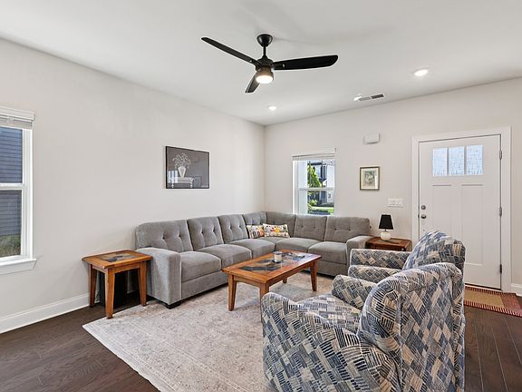 Energy-efficient home! Main Floor Living on a premium corner lot. Front porch easy maintenance living - No back yard -alley home. PRIVATE Primary Suite is quiet - no rooms overhead! Laundry & 1/2 bath down-ideal for Main floor Living 2 beds, full bath, large storage closet & large loft up. The spacious great room is an entertainer's dream, opening to a kitchen featuring an island and casual dining nook. White cabinets with Jasmine White quartz countertops, weathered hard surface flooring with gray beige tweed carpet come.Washer, Dryer, Refrigerator Included. Taylor Landing community in heart of Columbia, minutes from the town square. Community has walking trails, dog park, playground & activity lawn with views of the Duck River!