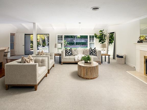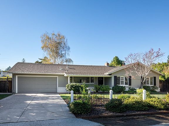 Ideally located on a premier non-through street in North Los Altos, this updated ranch home showcases timeless curb appeal and flexibility for modern living. With freshly painted interiors and new carpet, plus an updated kitchen and a remodeled primary suite bath, this home is ready to enjoy today & offers potential for further transformation. Crowned by a partially beamed and paneled vaulted ceiling, the spacious living room with fireplace is open to the dining area. A rear expanse of picture windows and a sliding glass door fill the spaces with natural light and open to the rear yard. Ready for everyday enjoyment and entertaining, the eat-in kitchen features white cabinetry, granite counters, and a convenient closet pantry. There are 4 bedrooms and 3 baths, including a bedroom wing with primary suite opening to the rear yard, plus 2 additional bedrooms and a bath. Privately located in its own wing, and potential for a full ADU with outside access, is a multi-room suite with an office or living room, separate bedroom, and bath. The large yard offers space for play, gardening, and provisions in place for a possible future spa. Outstanding Los Altos schools and a location less than one mile from the Village.