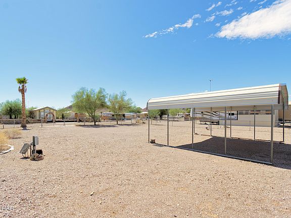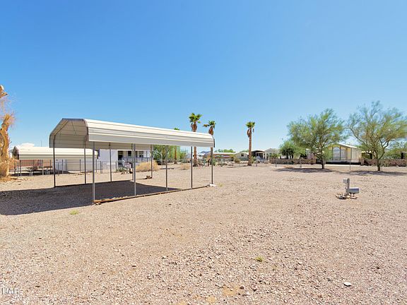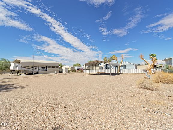 Larger fenced lot with 2-RV hookups and 20' X 22' carport. Carport placed at rear center of lot for ease of maneuverability for your trailers/RV. Perfect snowbird lot for you and your friends! Plenty of room to add a home in the future. Quartzsite has a manufactured home dealer that can assist with permits and install. Home to the East at 648 W Emerald (MLS 1037404) also available