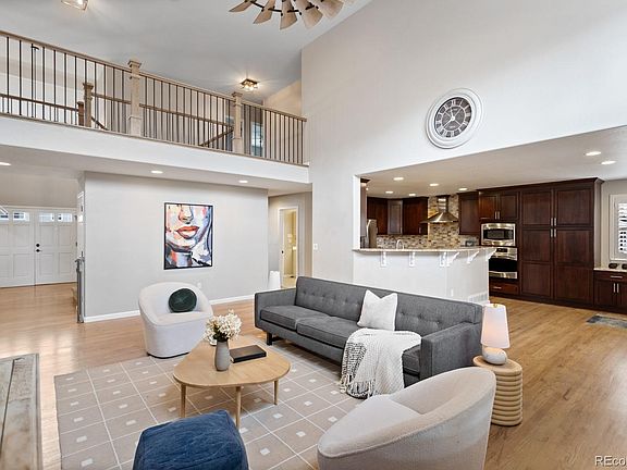 Welcome to this stunning, spacious home in one of West Arvada’s most coveted neighborhoods - West Woods Ranch, just minutes from West Woods Golf Course and zoned for top-rated Ralston Valley High School. With 6 bedrooms, 5 bathrooms, and a fully finished basement, this home offers 4,400 finished square feet of both elegance and functionality for modern living. Inside, you'll find hardwood floors, fresh interior paint, and a bright, open layout perfect for families or entertaining. The main level includes a bedroom and separate home office, plus formal dining, a casual eating nook, and a large kitchen with granite countertops, two pantries, and ample cabinet and counter space. Soaring two-story ceilings in the main family room add an airy, luxurious feel. Upstairs features four spacious bedrooms, including a serene primary suite. The fully finished basement is ideal for guests or extended family, complete with a bedroom, bath, dry bar, and bonus space perfect for a media room, playroom, or second family room. This home is packed with smart upgrades, including a brand-new Class 4 shingle roof, PAID for solar panels, and an EV charging port in the roomy 3-car garage. Step outside to a beautifully landscaped, low-maintenance backyard with turf grass, garden beds with a drip system, playset included, and a covered patio with ceiling fans, electric, and privacy shades—perfect for relaxing summer evenings in the shade. Enjoy the convenience of walking to West Woods Golf Course to hit a bucket of balls or unwind with dinner and drinks on the clubhouse patio. With top schools, trails, and parks nearby, this home truly has it all.