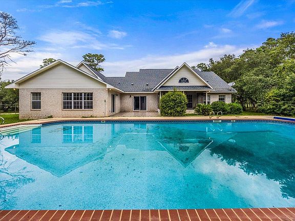 One of a kind custom built home By Dolphin Custom Homes in Holley By Sea located on .95 of an acre. This home features 3 bedroom 2 1/2 baths, 25x50 in ground pool with automatic pool cover, and an outdoor shower all located on a corner lot with a park like setting. Home was built with concrete cinderblocks exterior with brick over it. Has an actual attic with wide stairs going up from hallway. Could easily be converted for extra space. Most buyers would want to update - but this home is worth the effort.