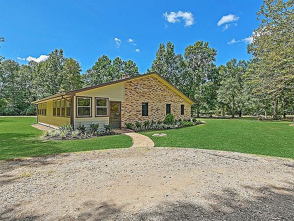 Peaceful country living minutes just from town! One-story brick home behind fenced road frontage has a fabulous enclosed porch w/windows and is sited on 5 acres. Tidy kitchen, huge walk-in pantry, wood-burning fireplace w/heatilator. Amazing 20x24 gameroom w/a substantial walk-in storage closet (has separate ac) is perfect for home-school or a home business. Large front wooden deck, storage shed. Recent water heater & roof replacement.