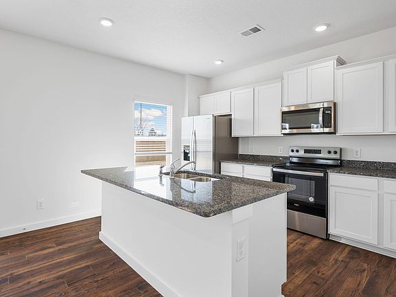 This home is loaded with thoughtful details: 9-ft ceilings on the first floor, shaker-style cabinetry, granite countertops with backsplash, Whirlpool stainless steel appliances, Moen fixtures, Mohawk Luxury Vinyl Flooring, LED lighting throughout, architectural shingles, a concrete rear patio, and Smart Home connectivity.