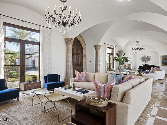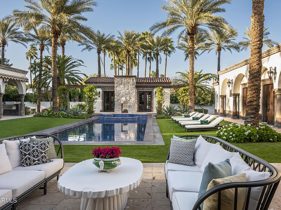 In the exclusive GUARD-GATED COMMUNITY of Judson, this extraordinary estate blends modern luxury w/ timeless elegance. Meticulously remodeled (2020-2025) by GM Hunt, the 5 bed + 8 bath estate spans 10,539sf, w/ a detached casita on 1.2 acres. Enter a Grand Room w/ magnificent arches overlooking a resort-style pool/spa, patios + multiple firepits. The chef's kitchen has 2 oversized islands— one Calcutta marble, the other wood. The newly completed primary suite offers a spa-like marble bathrm w/oversized steam shower + beautiful finishes. Designed for relaxation & entertainment, highlights include a bold blue theater, 2 spacious offices, an additional family rm, sportcourt, & Zen garden w/ Koi stream + fire features. Outside, beautiful lawns, palms, mature oak, ash, sycamore, and olive trees create a lush retreat. With 5 car garages, & exquisite designer finishes, this home is a rare Paradise Valley gem.