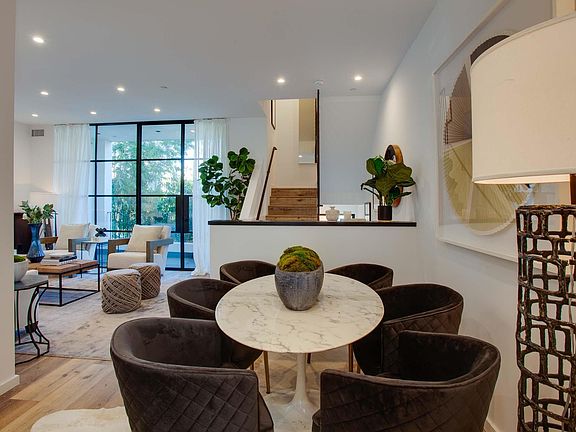 A New Construction complex with gated townhomes in the heart of Hollywood; These unique 4-bed, 4-bath townhomes are exceptionally bright, designed to achieve a perfect balance of timeless design, sophistication, quality & elegance using warm wood floors, steel windows, steel doors and classic tiles. Main level offers an open space inviting you to cozy up by the fireplace or relax at your balcony; Stunning kitchen equipped with champagne appliances, Italian faucets, custom cabinetry & shelving. Each room feels complete with built-in closets, filled with natural light and dressed with sheer curtains. Chic Bathrooms continues the design tone and luxury feel of this home. Sealing your experience with a large private rooftop deck BBQ ready with natural gas line & electric cables to connect a projector providing a spot to unwind and take in the sunsets and breathtaking views of the Hollywood sign. Laundry is included. as well as an attached 2 car enclosed garage. Owner pays for Trash