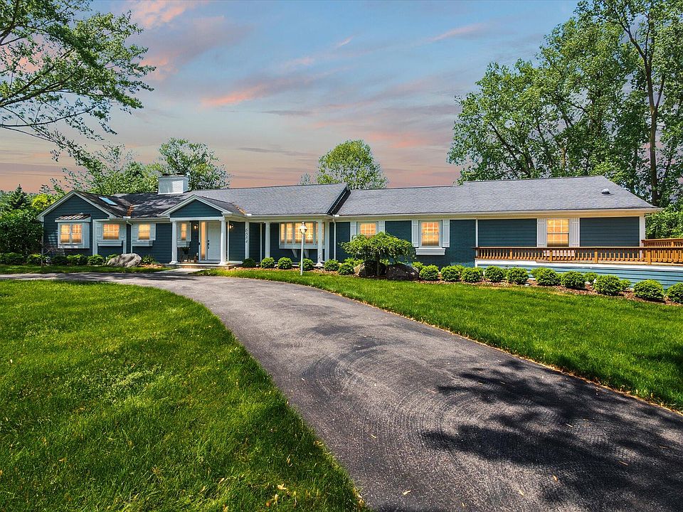 This beautifully updated ranch is situated on just over an acre of property overlooking Meadow Lake and the stunning in ground pool with waterfall from your windows and big deck. Walk into this home filled with tons of natural light. Tons of living space on two levels. The enormous kitchen offers an extraordinary amount of counter space, a Viking double oven, dual sinks, new Fisher and Paykel refrigerator (2021), Viking stove top, granite counters, breakfast bar seating, cherrywood cabinets, and large pantry with glass barn door. The primary bedroom is located on the first level with two large walk-in closets and a spa-like ensuite bath and private balcony with hot tub. Two additional bedrooms and remodeled bathroom on lower level. Outside is newly refinished pool and deck.