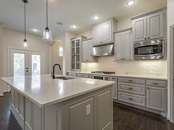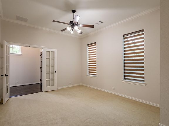 This stunning home has a fabulous floor plan and many decorator features throughout and all nestled on a lovely landscaped, low maintenance, corner lot with nice sized side yard, metal fence, and big patio, plus an incredible view from the primary suite balcony! Shelter guests from the rain under the covered entry porch featuring a slab door with speakeasy style viewing window. Just inside the entry is a spacious study. The open concept living and dining space is light and bright and will be the social hub of the house. Enjoy preparing meals in this gorgeous kitchen featuring layered lighting for adjustable atmosphere, exquisite cabinetry, quartz counter tops and large island with breakfast bar. Located downstairs is a full bedroom with private bath perfect for guests or extended family, a half bath, and plenty of storage. Enjoy morning coffee watching the sun rise and wind down your busy day with the incredible nighttime view from the primary suite balcony best place to view the full moon on a clear night. The spacious primary suite also features an exquisite full bath with separate, garden style tub and roomy shower, dual sinks with large vanity and plenty of storage below, and a huge walk-in closet. The 2nd living area makes a great game room or media center. There is also a 2-station office setup with built-in cabinets, a storage closet, and half bath. The 2nd and 3rd bedrooms have generous closet space and share a jack and Jill Bath. The utility room has a folding counter and built-in cabinets. 2-car garage features workspace and ceiling storage racks and cables. Landscaping maintained by HOA. A wonderful place to call home. Available June 13, 2025 Tenant pays all utilities and grounds care and pest control (if needed during occupation of property), must maintain renter's insurance. No smoking on property, no waterbeds, no sublease. Pets on a case-by-case basis and must do pet screening via our pet screening service. Lease duration 1 or 2 year lease. If you choose to apply for one of our rental homes, we do a full background check on everyone 18 or older, including criminal, credit, and nationwide eviction. We are looking for well-qualified applicants with a credit score of 600+, and we verify employment and rental history. We will need to see a minimum of 3 months proof of income in the form of recent check stubs, bank statements, or other verifiable sources, showing that your gross monthly income is 3 times the monthly rent of the property you are applying for - combined gross income if multiple people are applying. Refrigerator left as a courtesy and may not be repaired if it stops operating.
