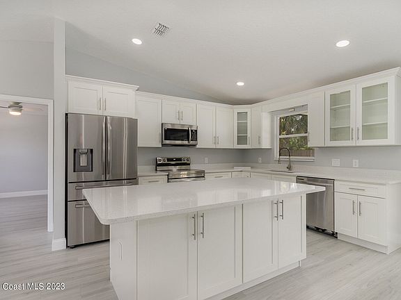 Wow, A MUST SEE ! Gorgeous 2 bedroom, 2 Bath screened POOL HOME with a New ROOF & a New A/C unit!! Large Corner Lot with circular driveway. New Soft close Kitchen Cabinets including Beautiful New Quartz Counter tops!! Stainless-Steal Appliances, New Bathrooms with Quartz Vanities. New toilets & a New Tub. Vaulted ceilings with New LED Lighting. New Water Heater. New Light fixtures. New Remote Ceiling fans in every room. Fresh Paint In & Out. Huge Fenced Backyard for your Boat & RV. Family Neighborhood with NO HOA. Great Central Location. Close to the Beach, Shopping, Schools, Restaurants & the River for Great fishing. Won't Last, Make your appointment today !!!