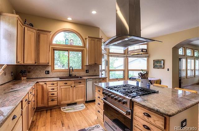 Huge slab granite countertops, new Viking range, Bosch appliances, all stainless steel appliances, extensive red oak floors, wood windows with wood casements, many arched doorways and built-ins, enclosed porch, 2 decks, flagstone patio, new Samsung washer and dryer, newer central air. Custom home by a great builder. Sprinkler system, low maintenance.