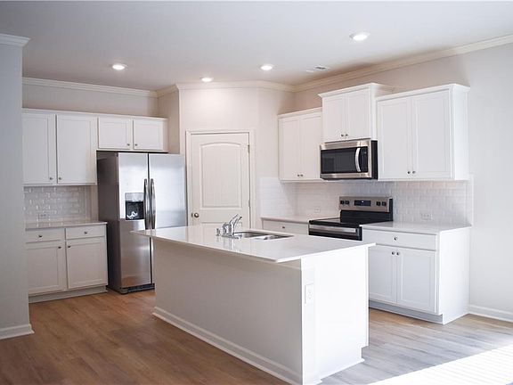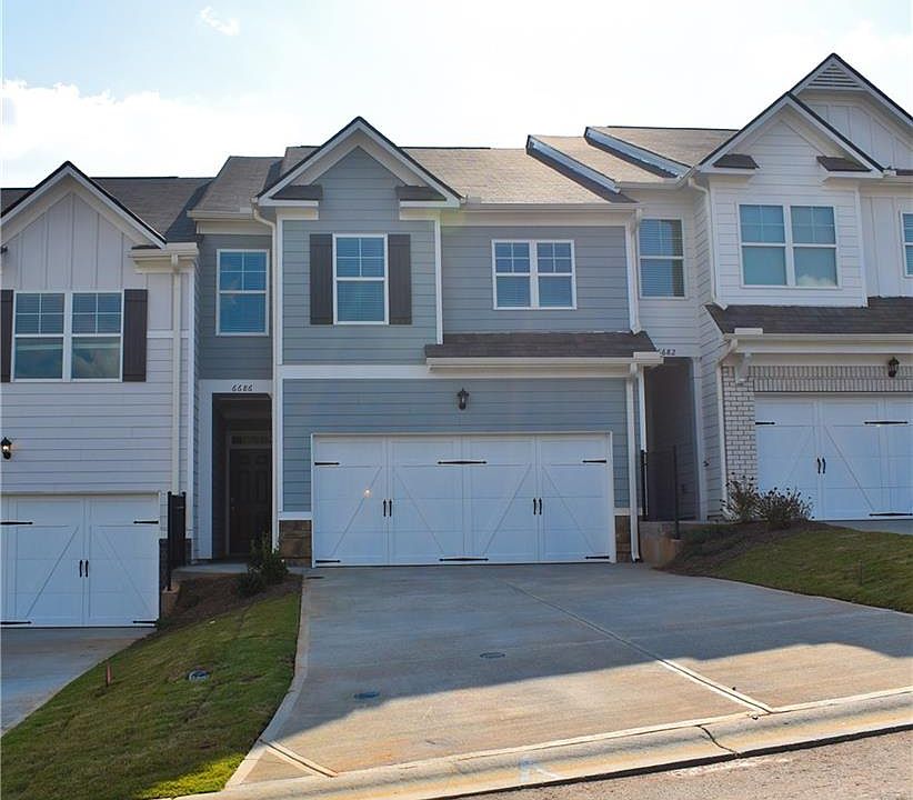 Be the first to live in this beautiful brand-new townhome in the desirable Waypoint community of Flowery Branch! Located at 6686 Corryton Street, this property has never been occupied and offers comfort, modern style, and an excellent location. The Sudbury floorplan features 3 bedrooms, 2.5 bathrooms, and a 2-car garage. Upon entry, a welcoming foyer leads into the open-concept main living area with a spacious family room, perfect for gatherings. The kitchen is fully equipped with stainless steel appliances, quartz countertops, shaker-style cabinetry, subway tile backsplash, and a central island, creating a stylish and functional space. The dining area opens to the backyard, ideal for indoor-outdoor living. Upstairs, the primary suite offers a luxurious retreat with a spa-like bathroom that includes a separate tub and shower, dual vanities, private walking closet, and a large walk-in closet. Two additional bedrooms, a full bath with dual vanities, and the laundry room complete the upper floor. +Highlights: Brand-new construction (never lived in!). Bright, modern, and open spaces. Peaceful community in Flowery Branch. Easy access to shopping, dining, parks, I-985 and just minutes from the Lake Lanier and chateau elan winery & resort. This home combines modern living with convenience and comfort in a prime location.