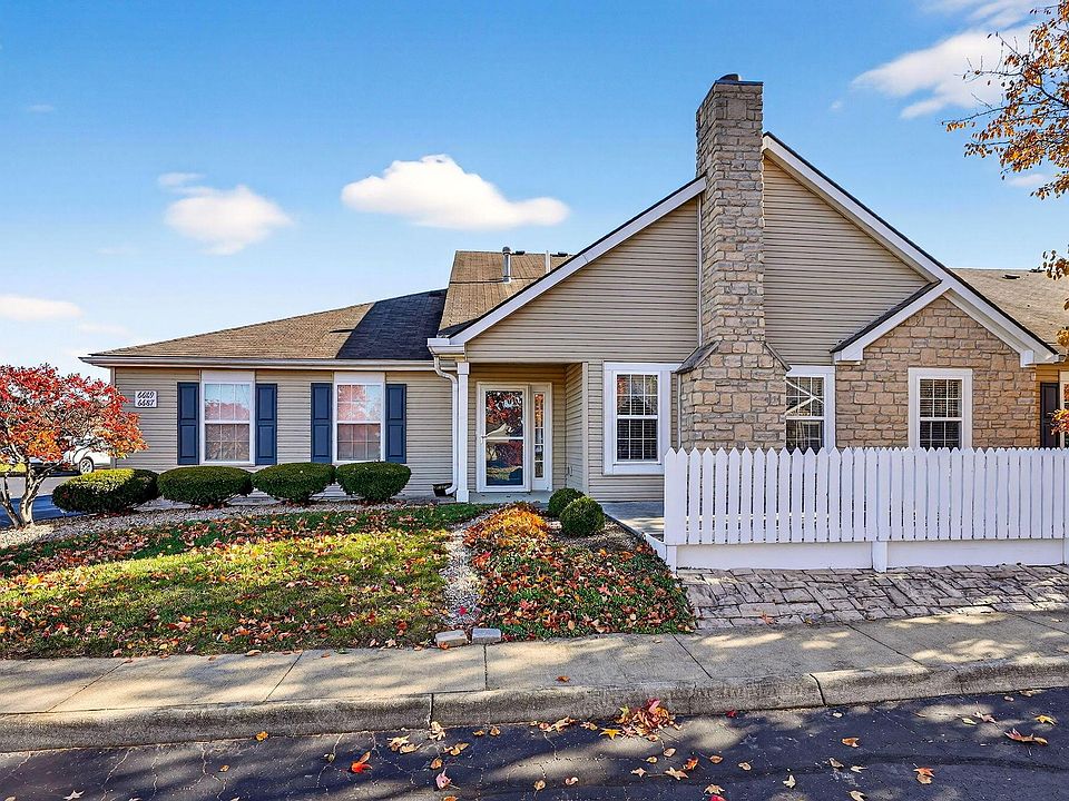 Welcome Home to Eagle Ridge Condominiums situated just steps from the Westchester Golf Course. Nothing to do but move in. This well cared for condo offers 2 bedrooms, 2 full baths and an attached 2 car garage. The kitchen is light and bright, open to the eating space with easy access to the large walk-in pantry. Offers lots of cabinet space and a newer dishwasher. Gas stove with the option to switch to electric if desired. Newer vinyl flooring. The primary bedroom offers a full bath and a large walk-in closet. Enjoy your morning coffee with a book on your front porch or cudlled up in front of the gas fieplace. Brand new roof coming in 2026. Close access to the freeway, shopping and more. Canal Winchester Schools