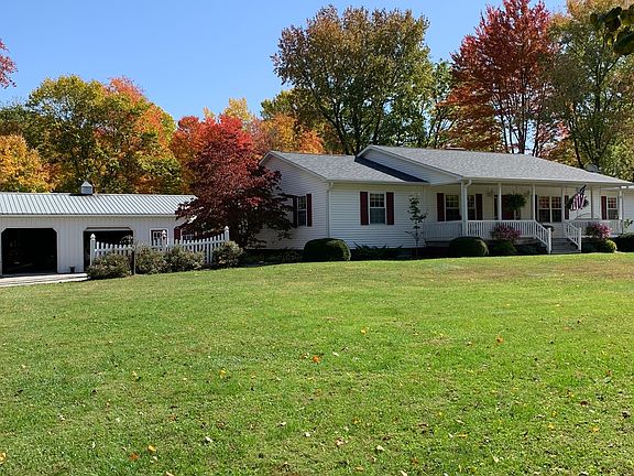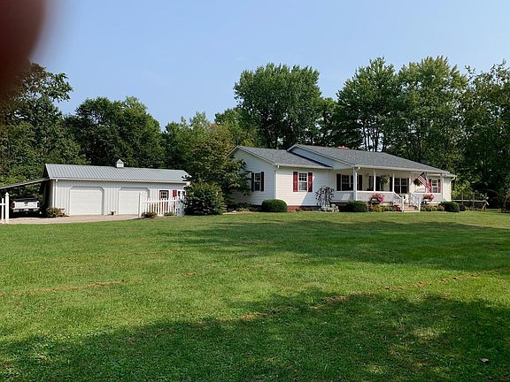 PRICE DROP ON Wonderful Country Living charming ranch with lots of updates plus full basement and 5 acres to roam! Beautiful great room with lots of natural light, maple thin slat wood floors throughout most of the home, plus good size dining room. Nice, updated kitchen the resident chef will love!! Abundance of counter tops and storage plus central location for family gatherings. Pantry, some specialty cabinetry and breakfast bar. Other updates include plumbing, windows, roofing, siding, sidewalks, appliances. Master bedroom suite offers dual sinks, soaking jet tub, separate shower and large walk-in closet. You are going to love the lg 3 car garage w/shop, plus covered front and back porches for relaxing! Abundant Wildlife!